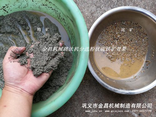 近段時間,安徽銅陵的客戶到我單位做小型跳汰機選礦實驗,客戶帶的是粉狀硫鐵礦,里邊含泥量是很大的,但是泥土沒有任何的粘性,這也是客戶篩分好的顆粒,我們可以用跳汰機直接進行分選,起初客戶對跳汰機是比較懷疑的態(tài)度,認(rèn)為跳汰機分選這種硫鐵礦效果達不到搖床的質(zhì)量,但是經(jīng)過我們對跳汰機的調(diào)節(jié),最終選出了合格的精礦和尾礦,客戶對此也是非常滿意的。